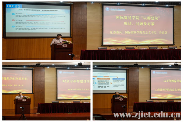 会上,国际贸易学院、工商管理学院、财务会计学院、人文旅游学院、信息技术学院、应用工程学院、合作经济学院七个二级学院负责人根据学校“十四五”事业发展规划、“双高”建设及高水平职业大学建设等目标,围绕“以群建院的逻辑思考”这一主题,分析现状及存在的问题,并提出下一步工作思路,主题鲜明、目标明确、措施到位,为二级学院今后开展教育教学改革工作奠定了良好的基础。