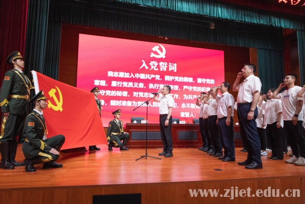 在劳赐铭领誓下,新发展党员进行入党宣誓,全体与会党员重温入党誓词。大家面对党旗,用铿锵有力的声音表达对党的忠诚和热爱、为党奉献终身的信念和决心。