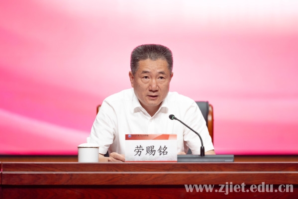 劳赐铭表示,学校正处于各项事业高质量发展的关键时期,高水平职业大学建设、现代职业教育体系建设任务艰巨繁重,面对新形势、新任务、新要求,要在加强理论修养上下功夫,增强政治坚定的底气;在突出强基固本上下功夫,永葆战斗堡垒的生气;在勇于担当作为上下功夫,激发干事创业的豪气;在厚植为民情怀上下功夫,接好打成一片的地气;在严守纪律规矩上下功夫,涵养一身浩然的正气。